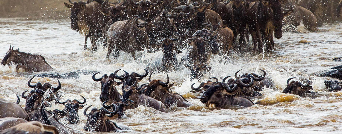 One of the most sought-after experiences for wildlife and nature enthusiasts, the Great Migration is the ever-moving circular migration of over a million animals across the Serengeti-Mara ecosystem. The constant movement of columns of wildebeest, joined by a host of companions, follow an age-old route in search of grazing and water. After calving in the southern part of Tanzania’s Serengeti near the Ngorongoro Conservation Area, the animal journey through the Serengeti up and around in a clockwise direction towards the Masai Mara in Kenya, before returning once again near the end of the year. Along the way, high drama is always present, as thousands of animals are taken by predators and thousands more are born, replenishing the numbers and sustaining the circle of life.