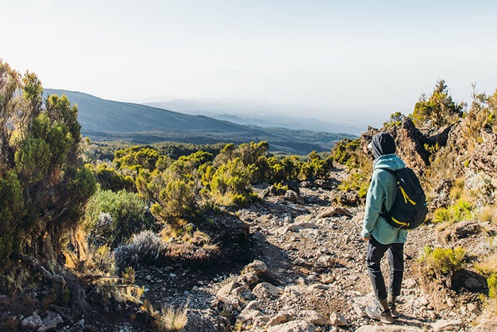 After a good night’s sleep and a hearty breakfast, we emerge from the rainforest and continue on an ascending path, crossing the valley along a steep rocky ridge. The route now turns west onto a river gorge until we arrive at the Shira campsite. Temperatures begin to drop.