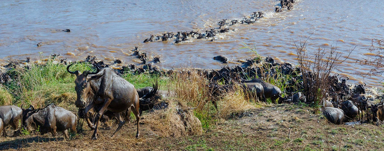 One of the most sought-after experiences for wildlife and nature enthusiasts, the Great Migration is the ever-moving circular migration of over a million animals across the Serengeti-Mara ecosystem. The constant movement of columns of wildebeest, joined by a host of companions, follow an age-old route in search of grazing and water. After calving in the southern part of Tanzania’s Serengeti near the Ngorongoro Conservation Area, the animal journey through the Serengeti up and around in a clockwise direction towards the Masai Mara in Kenya, before returning once again near the end of the year. Along the way, high drama is always present, as thousands of animals are taken by predators and thousands more are born, replenishing the numbers and sustaining the circle of life.