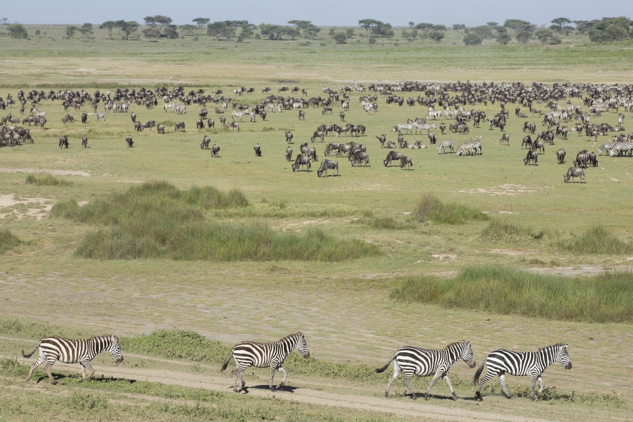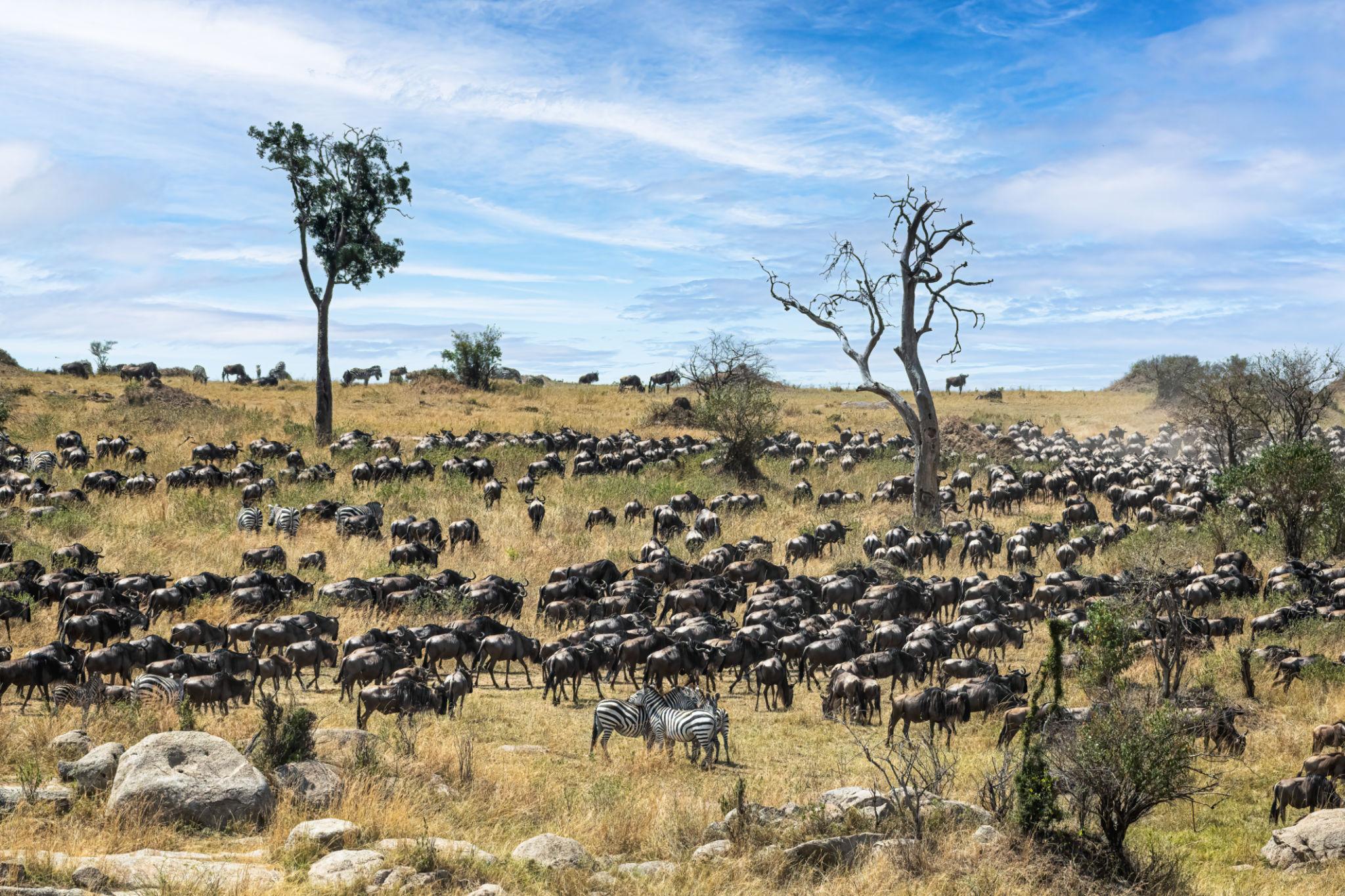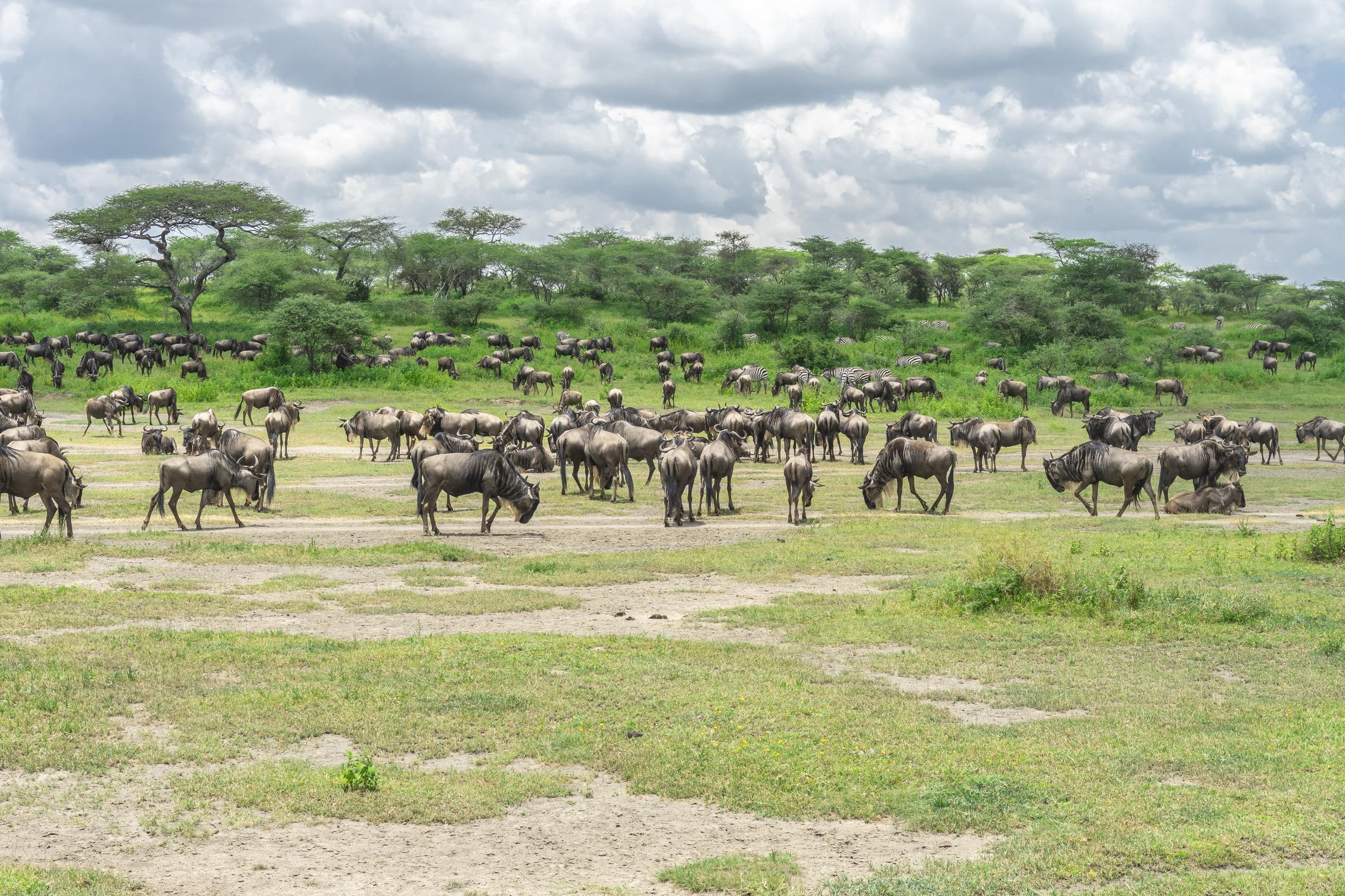 In Ndutu, located in the southern Serengeti ecosystem, you will witness the spectacular Great Migration calving season, where thousands of wildebeest gather on the plains to give birth, attracting predators such as lions, cheetahs, and hyenas. The adventure continues in Tarangire National Park, famous for its giant baobab trees and large herds of elephants, making it one of Tanzania’s best parks for wildlife viewing.